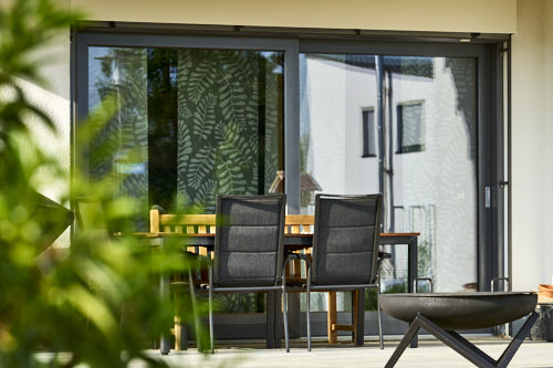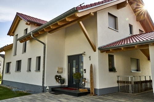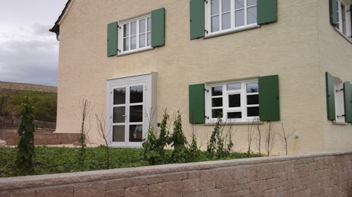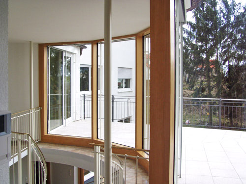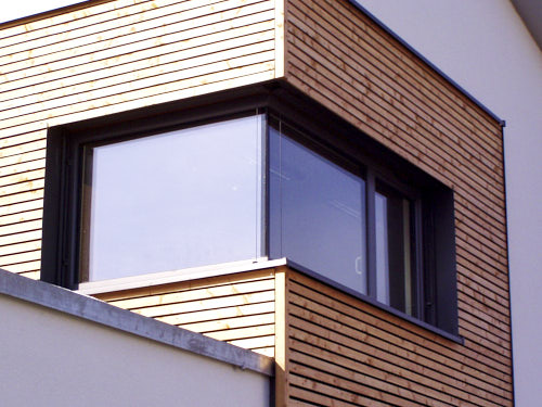 Innen wunderschönes Holz, außen dauerhafter Wetterschutz, alle Farben möglich. Energiesparend und umweltbewusst.